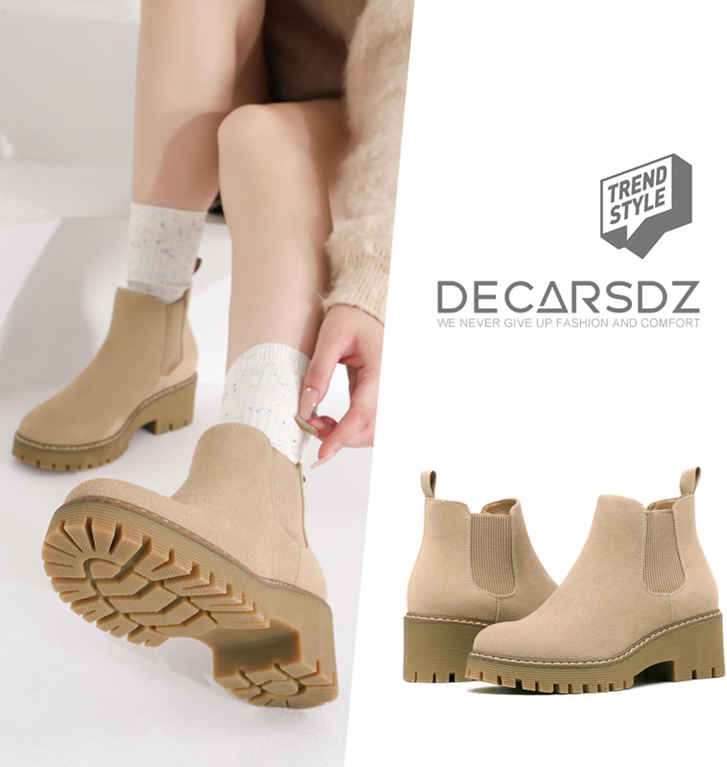 Be the first to review “DECARSDZ Womens Chunky Platform Chelsea Boot With Elastic Low Wedge Heel Slip On For Fall Work Suede Leather Classic Style Ankle Boots Women(Nude)”